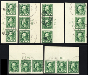 408, Used 1¢ Six PL# Strips of Three * Stuart Katz