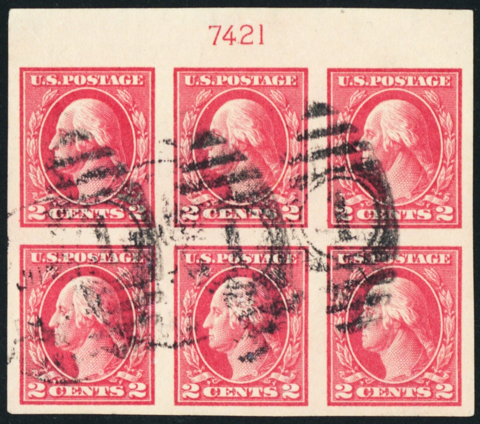 409, Used 2¢ XF Top Plate Block of Six Stamps ** Stuart Katz