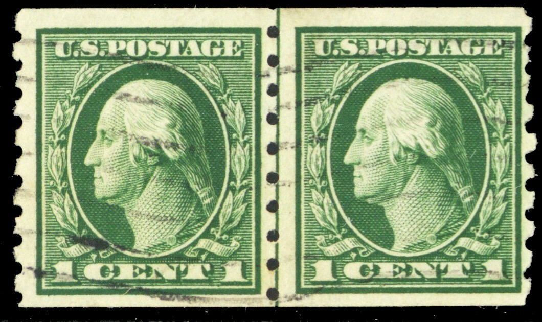 412, Used 1¢ VF Scarce Coil Line Pair Perf 8 1/c - Stuart Katz