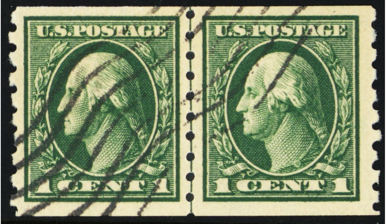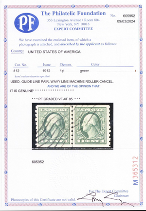 412, Used VF/XF 1¢ Coil Line Pair - Graded 85 PSE Certificate - Stuart Katz