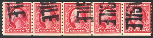 413, Used 2¢ FVF Scarce Genuine Coil Strip of 5 CV $ 250+ -- Stuart Katz