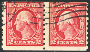 413, Used 2¢ Scarce Genuine Coil Pair CV $100.00 - Stuart Katz