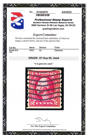 413, Used XF/Superb 2¢ Coil - Well Centered - PSE Graded 95 - Stuart Katz