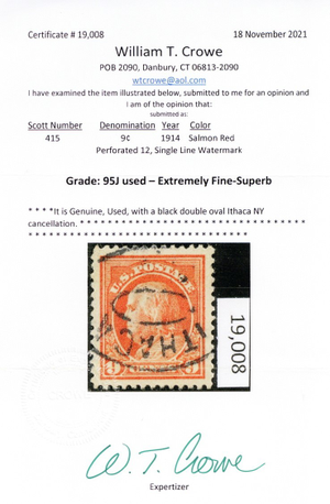 415 Used XF/Superb 9¢ - With Graded 95J JUMBO Certificate - Stuart Katz
