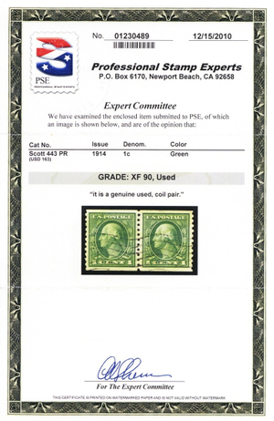 443, Used XF 1¢ Coil Pair - Well Centered - PSE Graded 90 - Stuart Katz