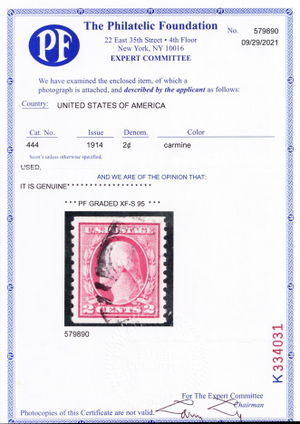 444, Used XF/SUPERB 2¢ Coil With PFC Graded 95 Certificate * Stuart Katz