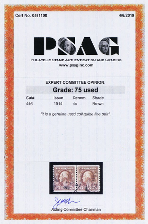 446, RARE Used 4¢ Line Pair With PSAG Graded Certificate - Stuart Katz