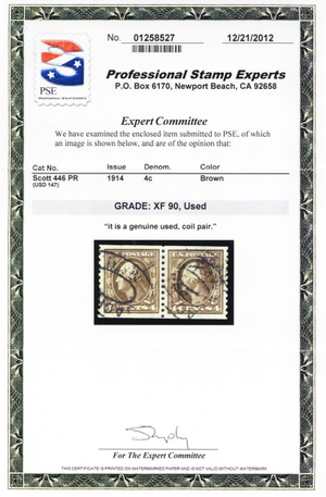 446, Used XF 4¢ RARE Coil Pair With Graded 90 PSE * Stuart Katz