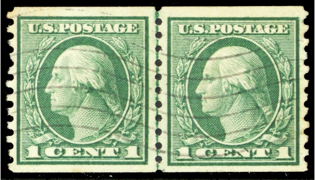452, Used 1¢ VF Scarce Coil Line Pair - Stuart Katz