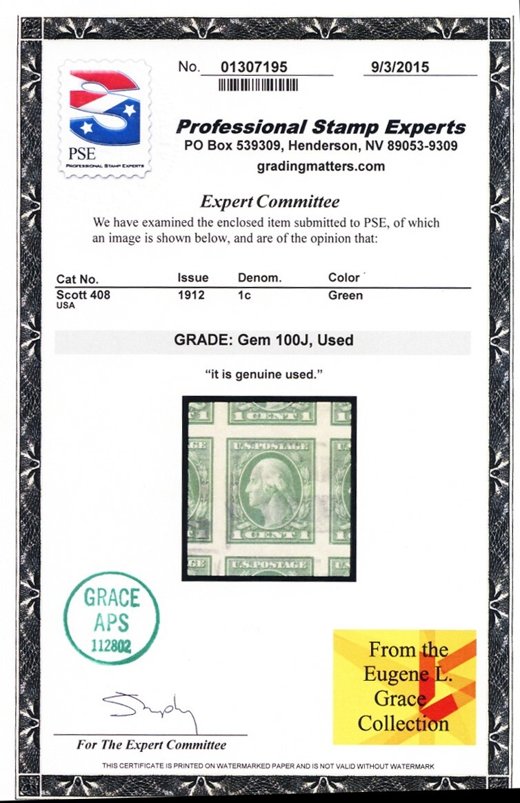 Due to the high cost of obtaining certificates we will only refund the cost of the stamp and not the cost of the certificate for stamps that sell for less than $250 that come back with a negative certificate. Stamps that sell for above $250 will receive a full refund for both the price of the stamp and cost of the certificate if it should come back not as described. For U.S. stamps only certificates from either APS, PSE or from the Philatelic Foundation are accepted, however "graded" certificates or "encased" items are not accepted.