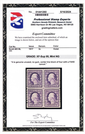 483, Used 3¢ Center Line Block With PSE Graded 95 Cert - READ - Stuart Katz