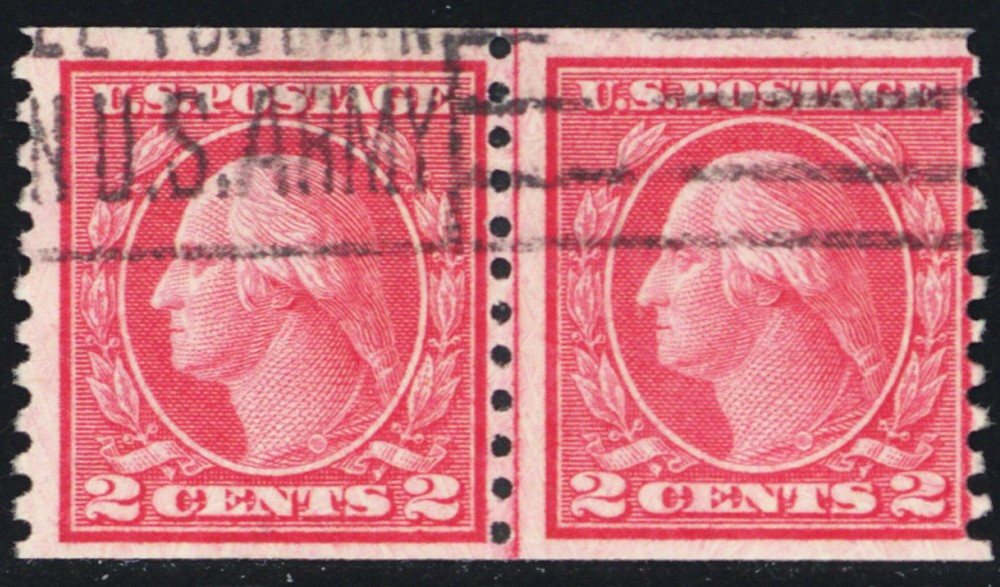 492, Used 2¢ Coil Line Pair SCV $35 - Stuart Katz