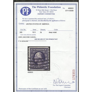 No refunds will be made after 60 days after the sale date unless extra time is granted. Due to the high cost of obtaining certificates we will only refund the cost of the stamp and not the cost of the certificate. For U.S. stamps only certificates from either APS, PSE or from the Philatelic Foundation are accepted, however "graded" certificates or "encased" items are not accepted.