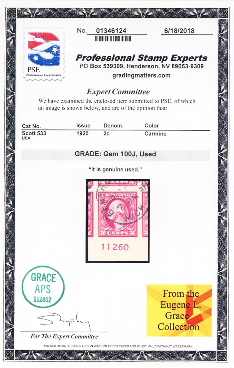 533, Used 2¢ SUPERB GEM - With Graded 100J PSE Certificate Stuart Katz