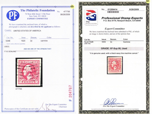 No refunds will be made after 60 days after the sale date unless extra time is granted. Due to the high cost of obtaining certificates we will only refund the cost of the stamp and not the cost of the certificate. For U.S. stamps only certificates from either APS, PSE or from the Philatelic Foundation are accepted, however "graded" certificates or "encased" items are not accepted.