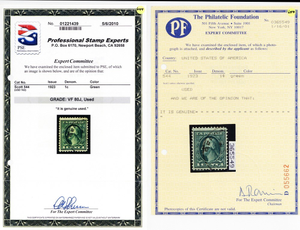 No refunds will be made after 60 days after the sale date unless extra time is granted. Due to the high cost of obtaining certificates we will only refund the cost of the stamp and not the cost of the certificate. For U.S. stamps only certificates from either APS, PSE or from the Philatelic Foundation are accepted, however "graded" certificates or "encased" items are not accepted.