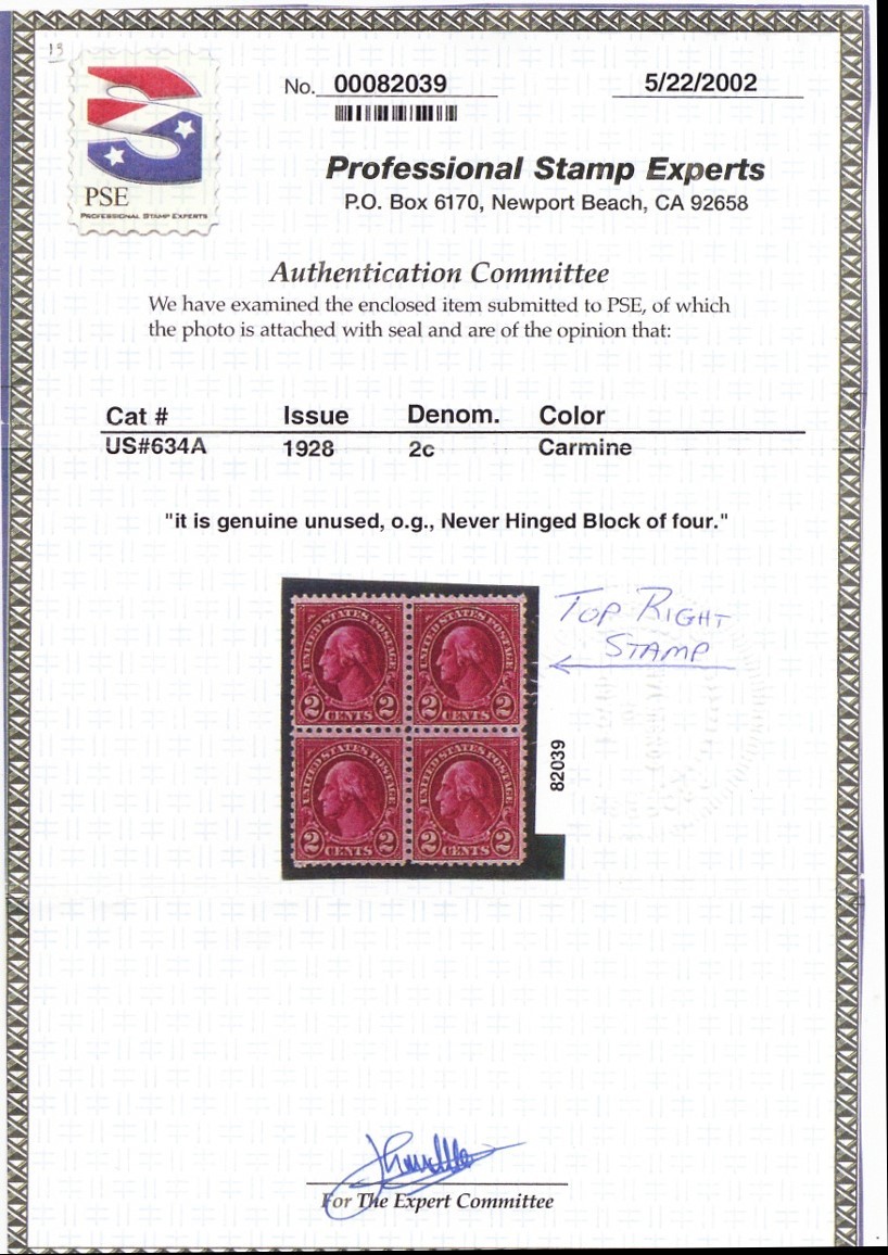 634A, Mint VF NH 2¢ - Nice Stamp With PSE Certificate (copy) * Stuart Katz
