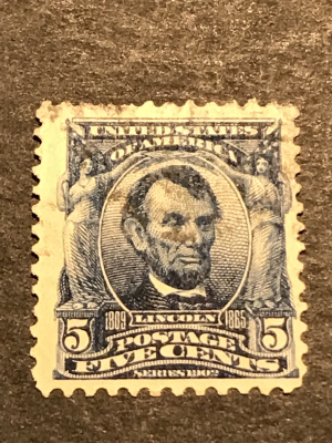 SCOTT# 304 1903 5 CENT LINCOLN REGULAR ISSUE USED N/G