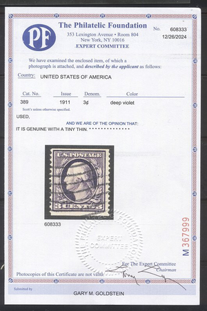 Scott #389: 3c Violet, Orangeburg Coil Centering & Condition: Used. Rich color. Fine-Very Fine example of this RARE Coil. Reverse (Gum Side): N/A Faults / Imperfections: Tiny shallow thin in the watermark (really trivial) The item pictured is the actual item you are purchasing, unless otherwise noted. I also offer an interest-free layaway plan. Ask me about it!" All items will be mailed a day or two after payment is received. --------------------------------------------------------------------------------