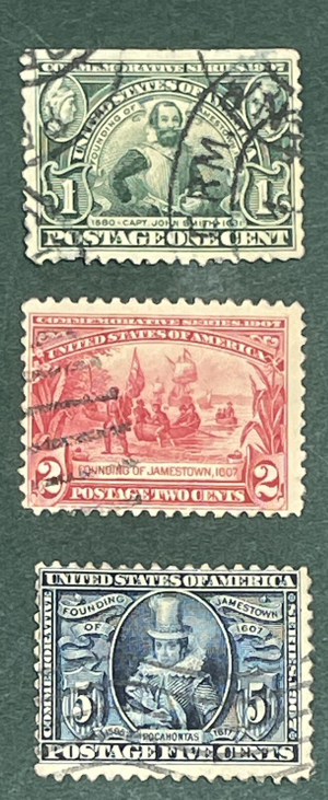 US Stamp 328, 329, 330 Jamestown Used. Shipped with USPS Ground Advantage.