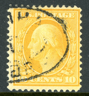 USA 1911 Washington 10ยข Yellow Perf 12 Scott 381 VFU Q734