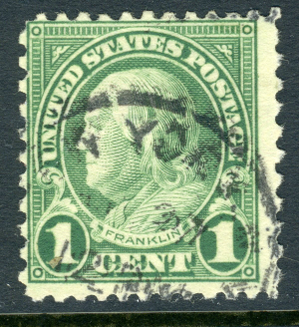 USA 1923 Franklin 1¢ Green Perf 11x10 Rotary Press 19¾x22¼ Scott #578 VFU T971