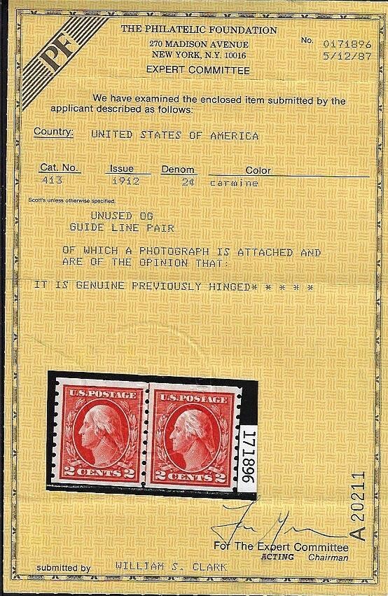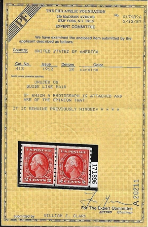 WCstamps: U.S. Scott #413 2c Type I Line Pair VF Mint OGh 2007 PSE Cert SMQ $275