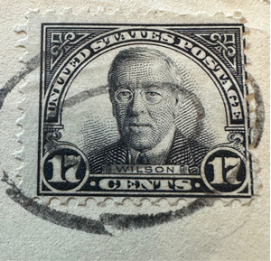 This is a rare 17 cent stamp featuring Woodrow Wilson, issued in 1931 in the United States.