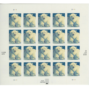 Polar Bear Sheet of Twenty 28 Cent Postage Stamps Scott 4387