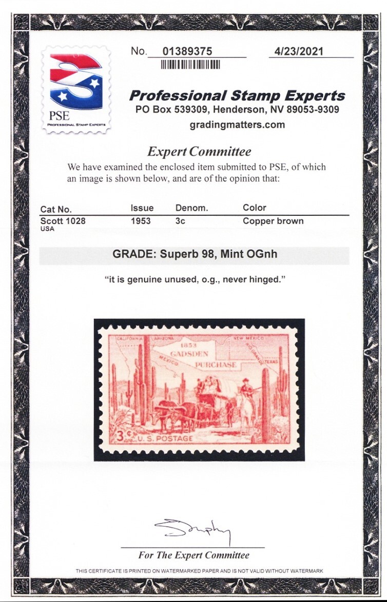 1028, Mint NH 3¢ PSE Graded 98 SUPERB * Stuart Katz