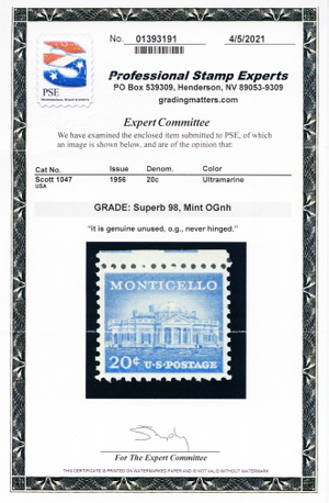 1047, Mint Superb 20¢ With Graded 98 PSE Certificate Stuart Katz