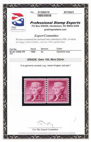 1055b, Mint Superb NH 2¢ Pair With Graded GEM 100 PSE Certificate - Stuart Katz