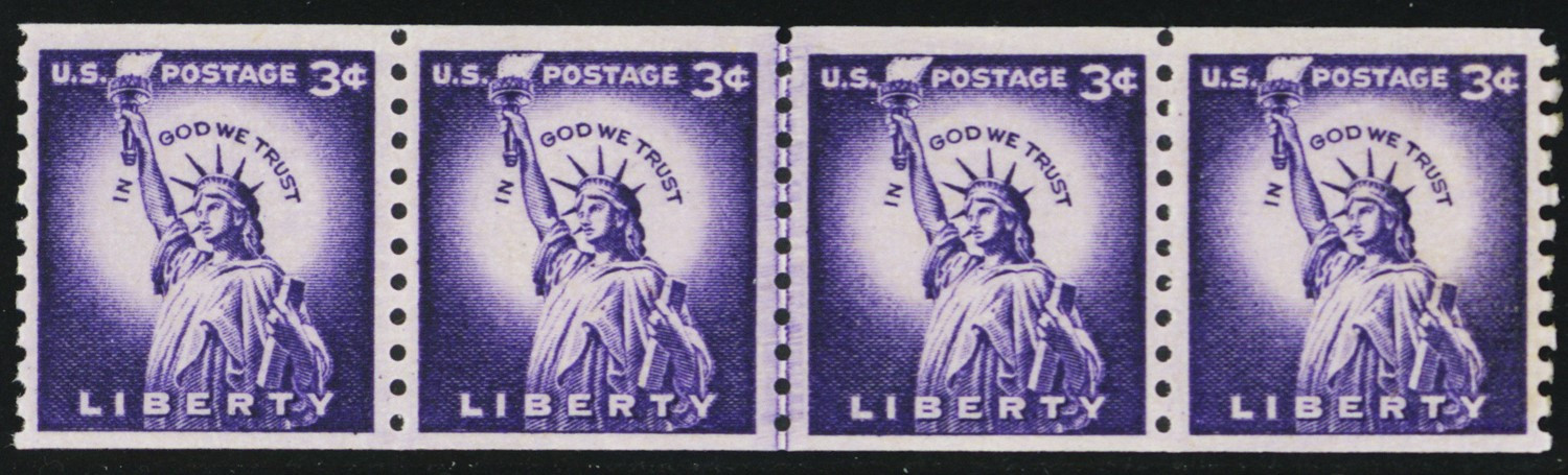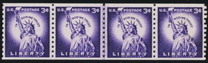 1057c, Mint VF NH 3¢ "LOOK" Coil Line Strip of Four Stamps * Stuart Katz