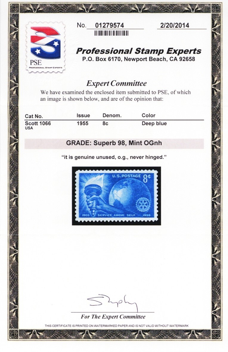 Due to the high cost of obtaining certificates we will only refund the cost of the stamp and not the cost of the certificate for stamps that sell for less than $250 that come back with a negative certificate. Stamps that sell for above $250 will receive a full refund for both the price of the stamp and cost of the certificate if it should come back not as described. For U.S. stamps only certificates from either APS, PSE or from the Philatelic Foundation are accepted, however "graded" certificates or "encased" items are not accepted.