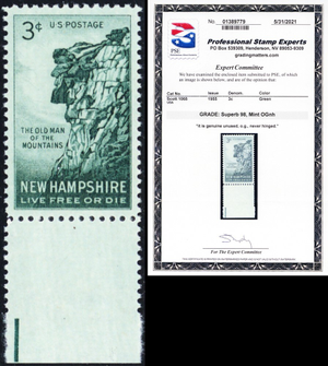 1068, Mint NH Superb 3¢ With Graded 98 PSE Certificate* Stuart Katz