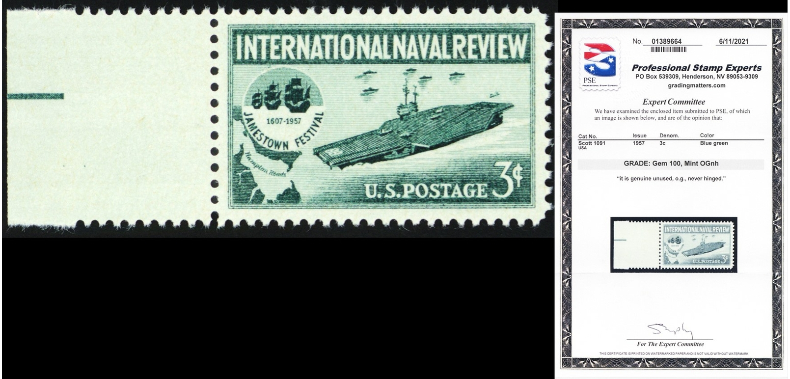 1091, Mint Superb NH 3¢ - With Graded GEM 100 PSE Certificate - Stuart Katz