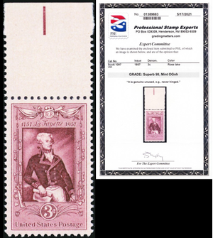 1097, Mint NH Superb 3¢ With Graded 98 PSE Certificate* Stuart Katz