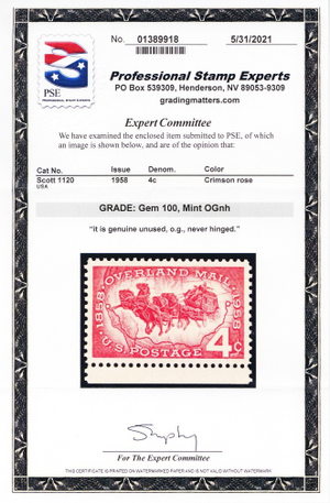 1120, Mint NH 4¢ Superb GEM - PSE Graded A Perfect 100 ** Stuart Katz