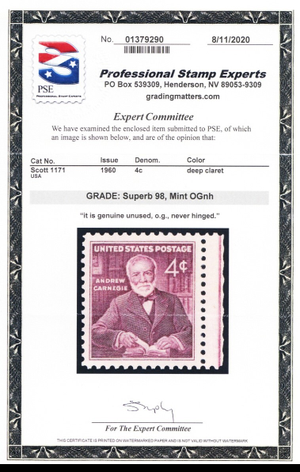 1171, Mint Superb NH 4¢ - PSE Graded 98 Certificate - Stuart Katz