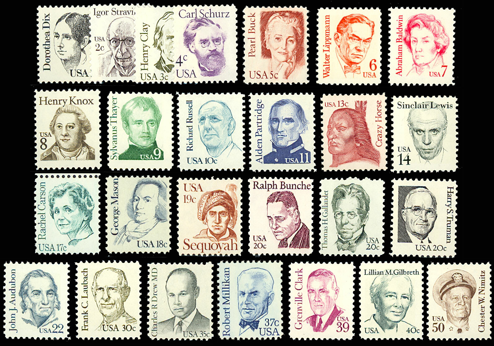 1844-69 Great Americans Series of 26 Mint NH Stamps - Stuart Katz