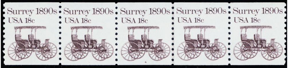1907, Plate #4 In Strip of Five 18¢ Surrey Coil Cat $55.00 - Stuart Katz