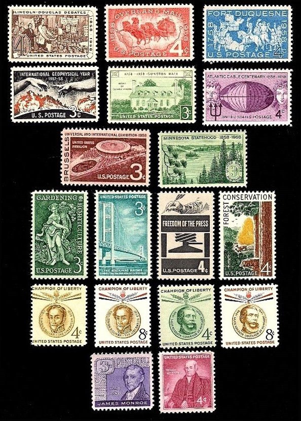 1958 Year Set of 18 Commemorative Stamps Mint NH - Stuart Katz