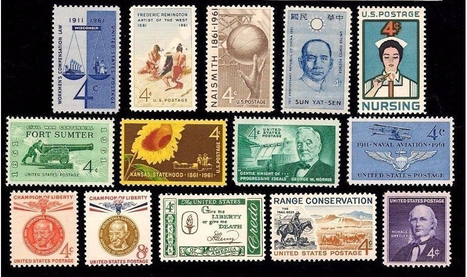 1961 Year Set of 14 Commemorative Stamps Mint NH - Stuart Katz