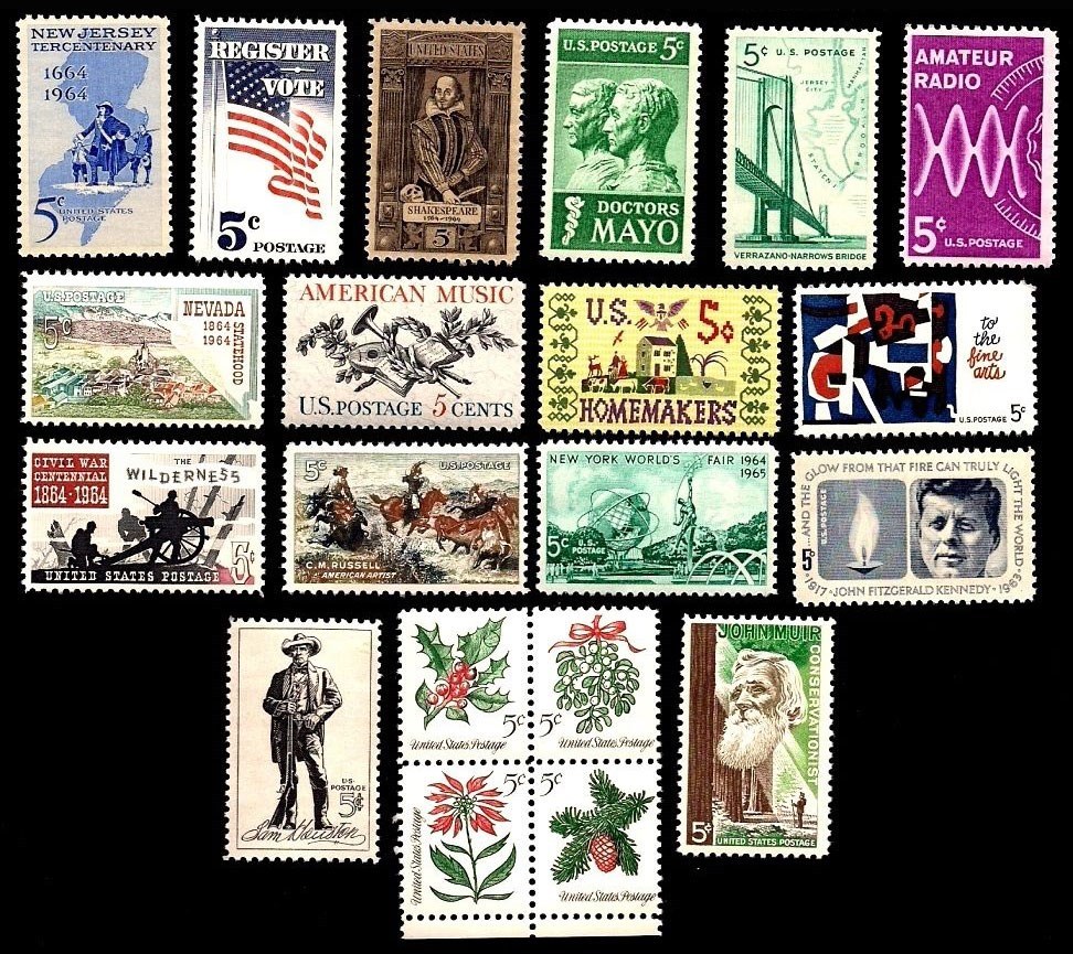 1964 Year Set of 20 Commemorative Stamps Mint NH - Stuart Katz