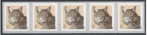 2012 Bobcat 1 Cent Coil Strip 5 Postage Stamps Scott 4672