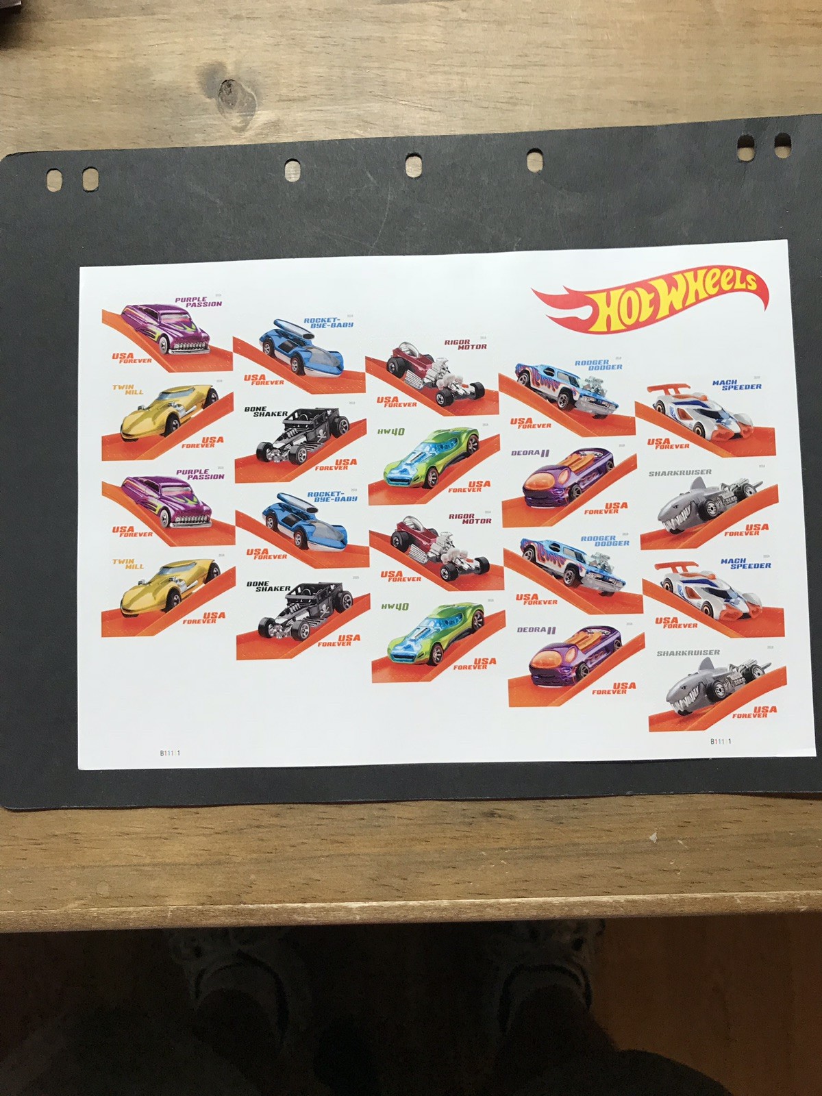 2018 Hot Wheels 50th Anniversary Stamp complete sheet, 20 forever stamps MNH