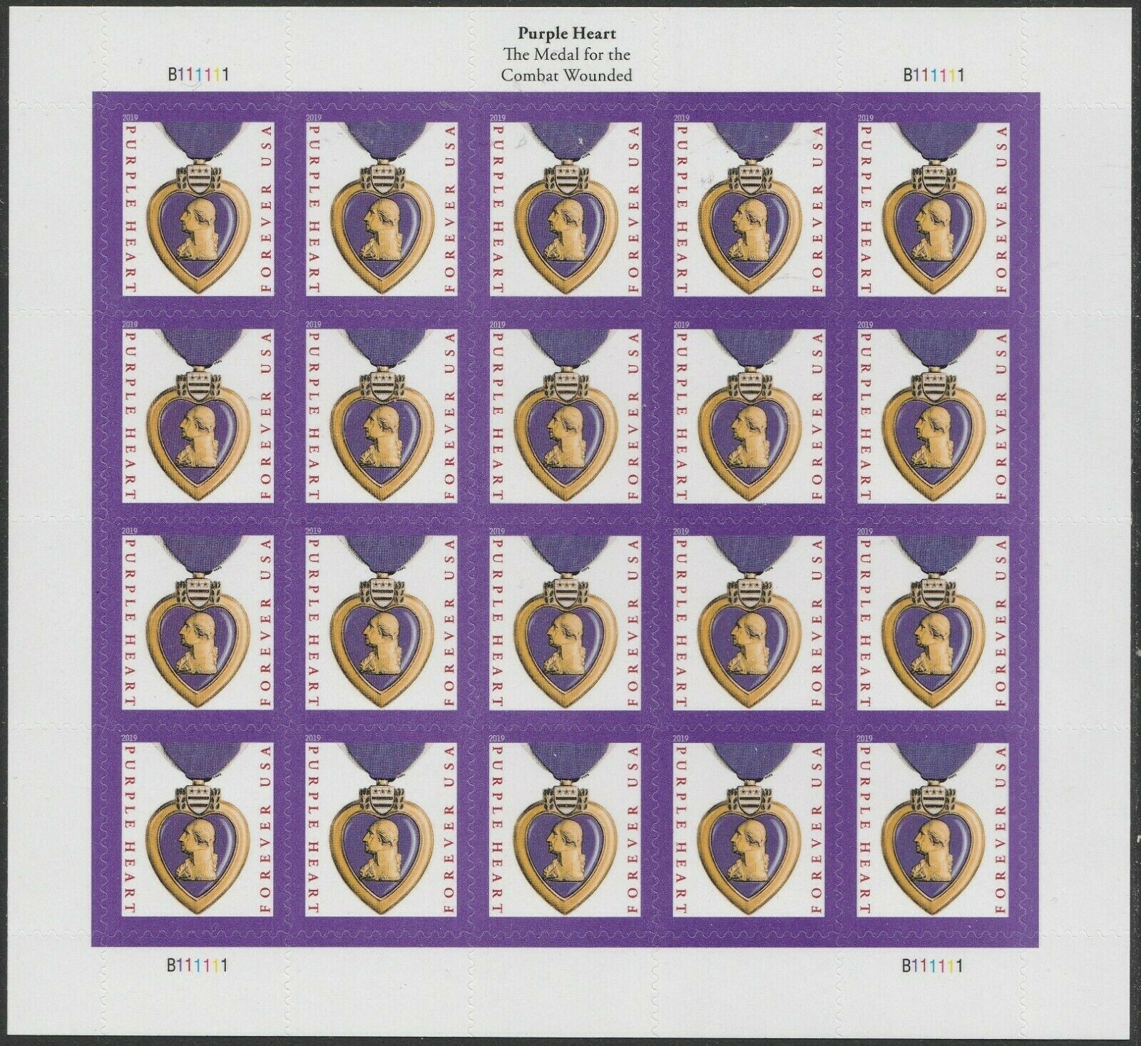2019 Purple Heart Medal of Honor Sheet of 20 - Postage Stamps Scott 5419