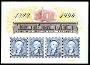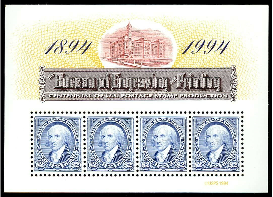 2875, Mint NH $2 Madison Souvenir Sheet of Four Stamps