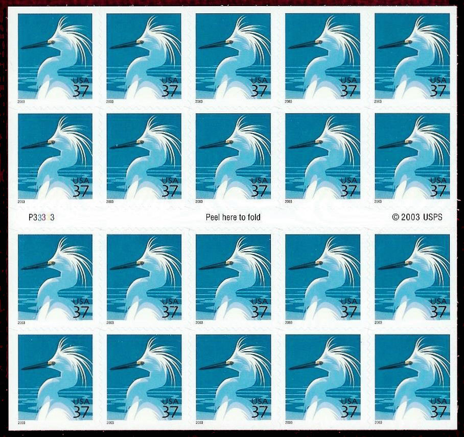 3830De 37¢ Egret "USPS" Microprinted on Bird's Breast Cat $110.00 - Stuart Katz