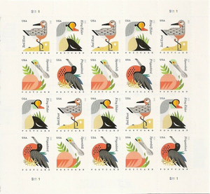 4994a, Coastal Birds Sheet of 20 Post Card - Stamps - Stuart Katz